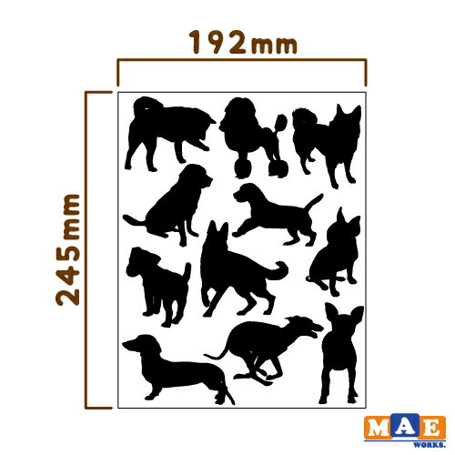 ウォールステッカー カベトモシリーズ 犬のシルエット ビッグサイズ かわいい わんこ インテリア シール 壁 ケースに WS-08