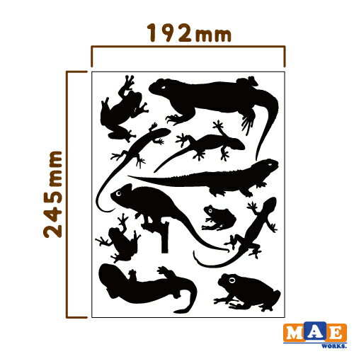 ウォールステッカー カベトモシリーズ 爬虫類・両生類シルエット ビッグサイズ かわいい カエル トカゲ インテリア シール 壁 ケースに WS-09