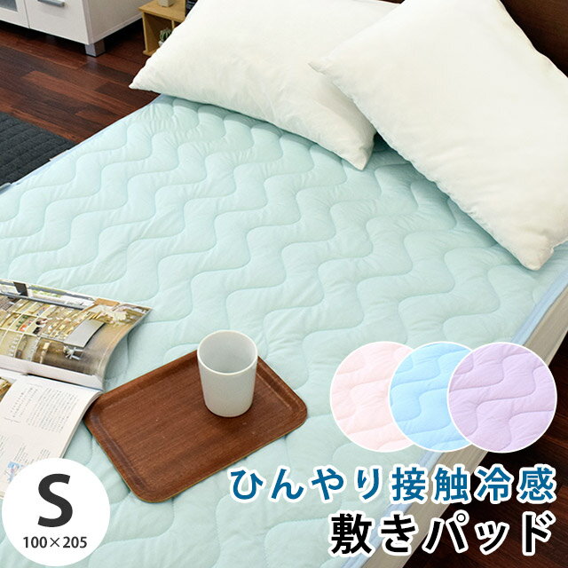 【期間限定】敷きパッド ひんやり接触冷感 シングル 100×205cm 無地 ピンク グリーン サックス ブルー パープル 【あす楽対応】【4日20時〜5日迄P2倍】