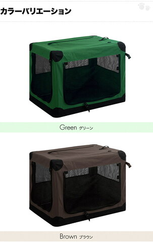 カラー:グリーン/ブラウンサイズ: 外寸:(約)80cm×58cm×57cm 内寸:(約)77cm×54cm×57cm 折りたたみ時:(約)82cm×60cm×9cm 材質: ポリエステル/スチール 重量:(約)3.8kg 参考サイズ:ビーグル・柴犬等※参考サイズはあくまで目安です。