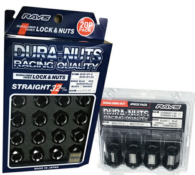 【RAYS】レイズ ジュラルミン ロック&ナットセット19HEX 6穴用 M12xP1.560°テーパー座 L32ストレート32mm24個入 ブラックアルマイト